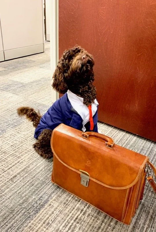 Bruno is the first of our team to warmly and animatedly greet every individual that walks through the door. As a certified therapy dog, Bruno offers hugs, kisses, and wags, and melts hearts of opposing counsel. The mini chocolate labradoodle packs a mighty punch when embracing clients, neighbors, and vendors. Bruno received his training and education from a well reputed facility in Virginia. He also regularly attends continuing education classes with his trainer in Elkridge, Maryland.